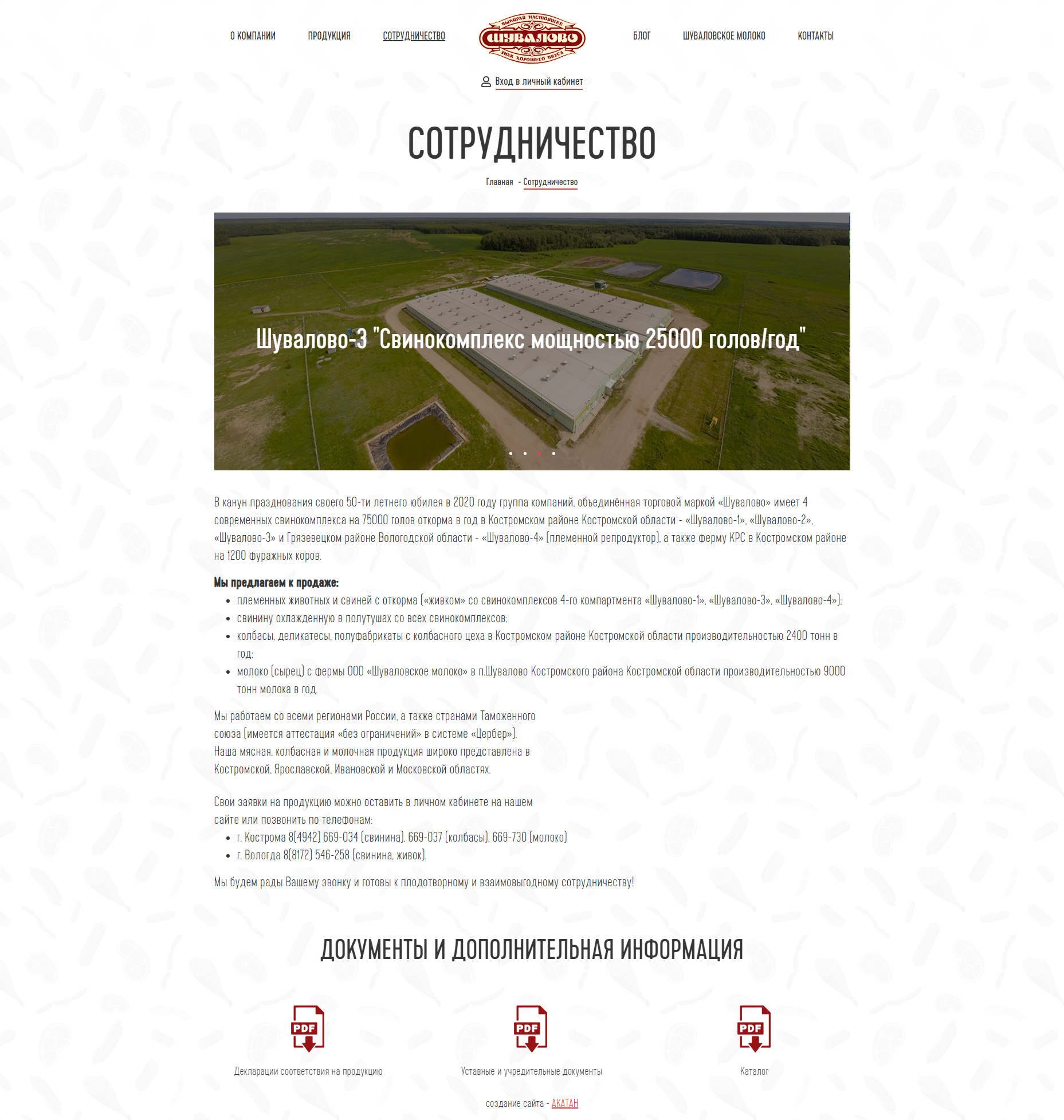 Костромское предприятие АО "Шувалово" специализируется на производстве свинины и продуктах её переработки.