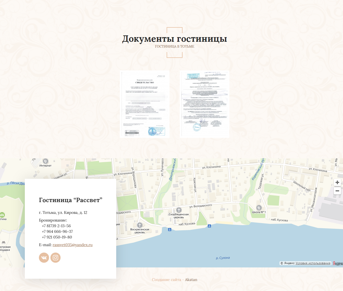 Гостиница «Рассвет» - уютная гостиница в шаговой доступности от центра города Тотьмы, но при этом в тихом месте.
